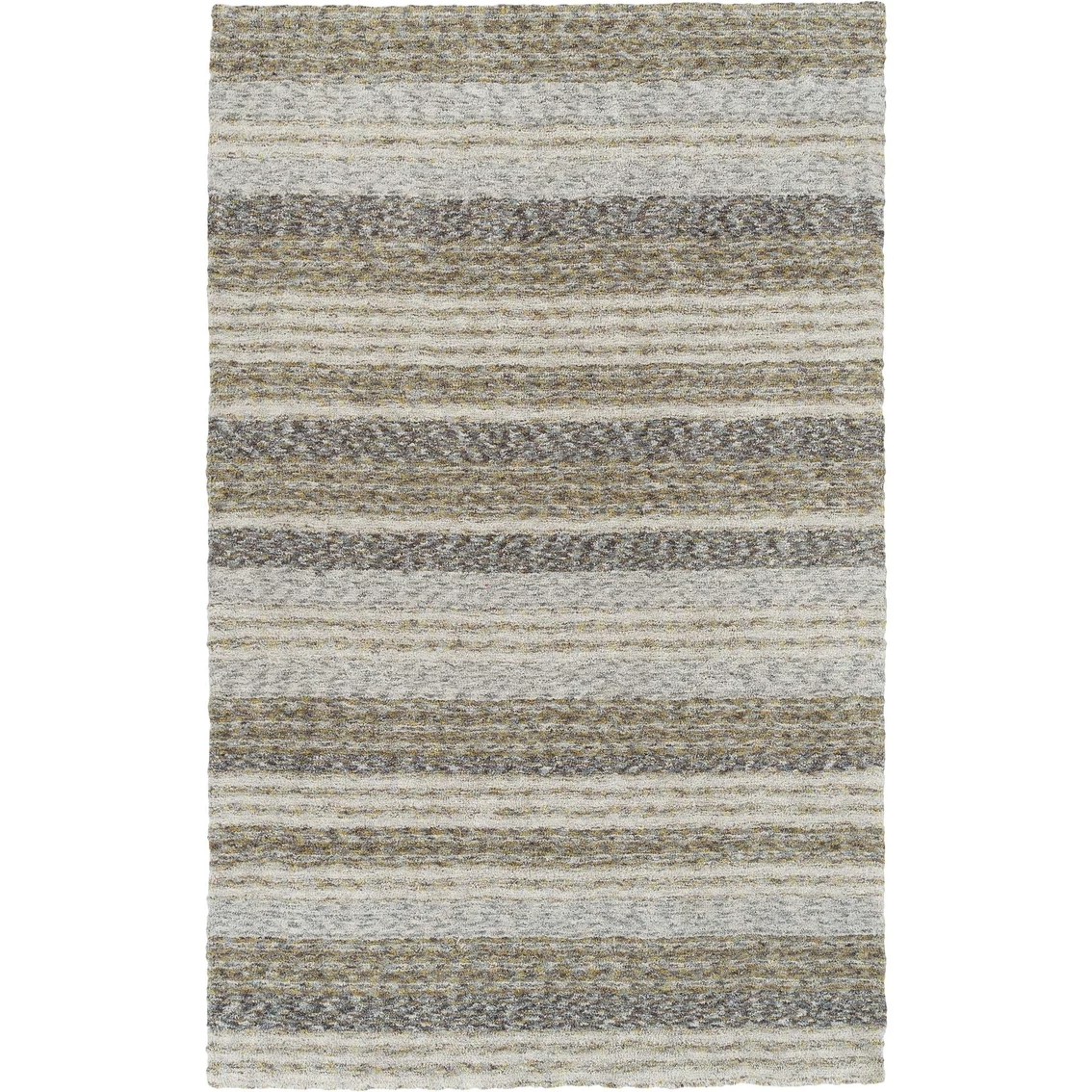 Featuring easy-to-use tonal stripes, this Joplin Area Rug from Dalyn Rug offers amazingly soft microfiber shag that may be the softest seat in the house. This handmade rug has a canvas backing and tufted shag construction. Model: JP1PE5X8.