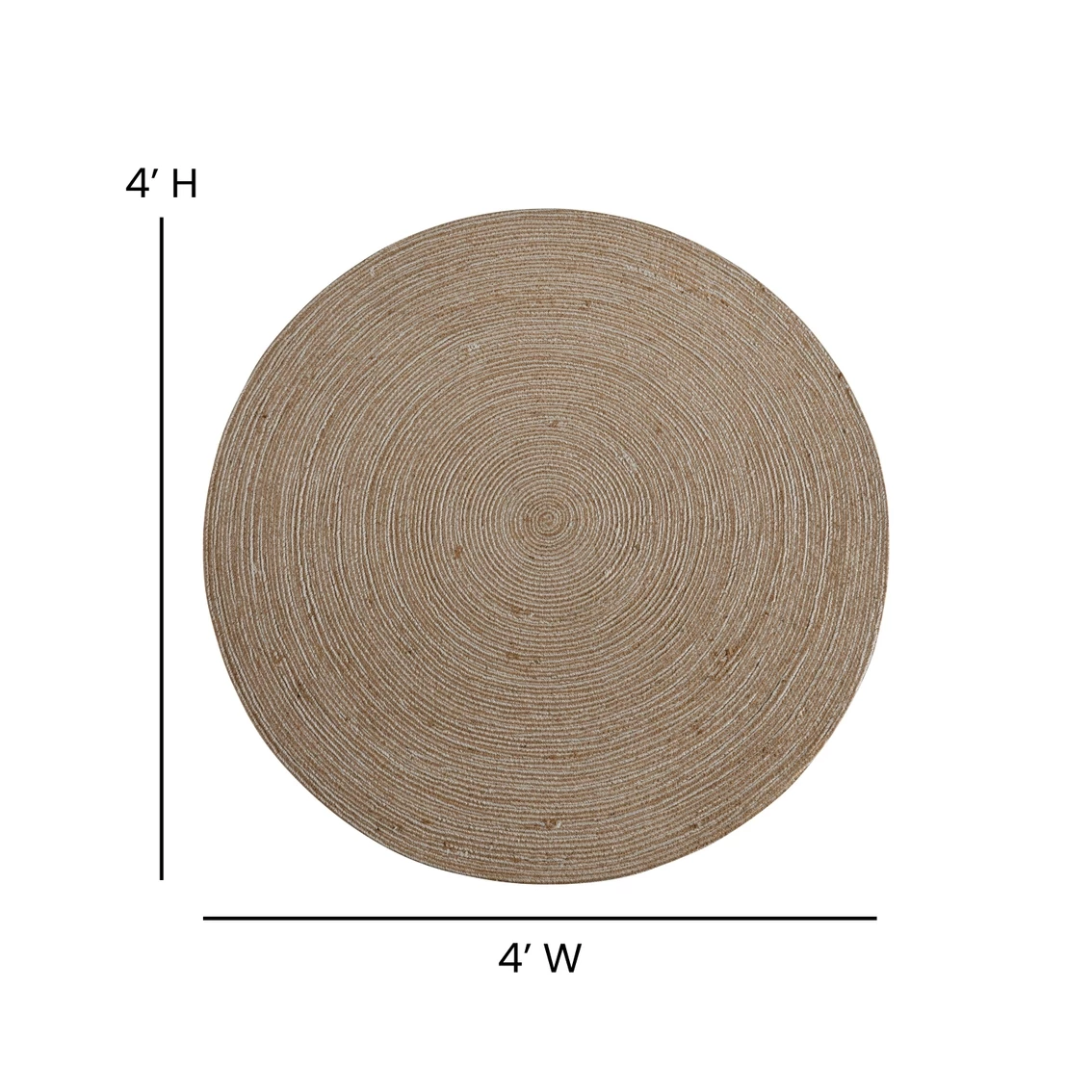 Add texture and depth to your living space at an affordable price with this round natural color indoor jute and polyester blend area rug. The neutral tone won’t compete with different patterns and will blend seamlessly in every decor from farmhouse to coastal making it a definite go-to for your design aesthetic. The round design will add a fresh look to any space.