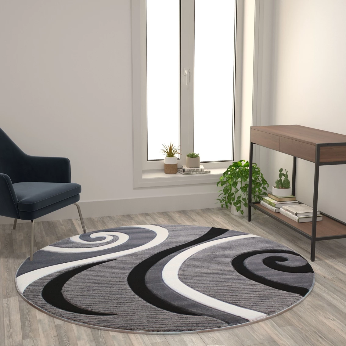 Let the sculpted, gently swirled pattern of this multipurpose area rug add unique style to any room in your home. Offering not only striking looks, this versatile contemporary accent rug allows you to add warmth to hardwood floors, color in multiple spaces, and protects flooring in high-traffic areas. This high-low pile area rug can be a warm place for your feet by the bed, in front of your couch, or in the hallway.