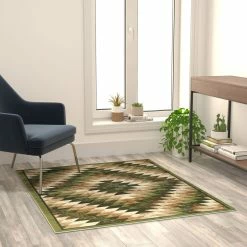 Let the dramatic design of this southwestern style area rug add some inspiration to your decor. This versatile modern accent rug allows you to add warmth to hardwood floors, dimension to small spaces, and protects flooring in high-traffic areas. This plush, high pile area rug can be used in large rooms to define the intent of specific areas.
