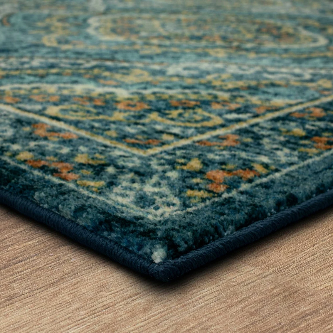 From casual to traditional, this trendsetting ornamental area rug from Karastan features a neutral color palette can be seamlessly integrated into a variety of home decor styles. Heirloom inspired details are featured in a bold color palette in the stately style of Karastan’s Cymbeline Area Rug in Blue. Crafted through unique precision dye-injected technology to create a tapestry of traditional design motifs, this debut of Karastan’s Kaleidoscope Collection is thoughtfully worn through delicately distressed details and color erosion techniques. Stylized on a silky-soft canvas of SmartStrand Triexta yarn, this area rug offers a built-in lifetime stain and soil resistance that will never wear or wash off, helping to maintain its eternally elegant aesthetic. It is ideal for entryways, living rooms, kitchens, bedrooms, dining areas, offices and more. Model: ZS011 A439.