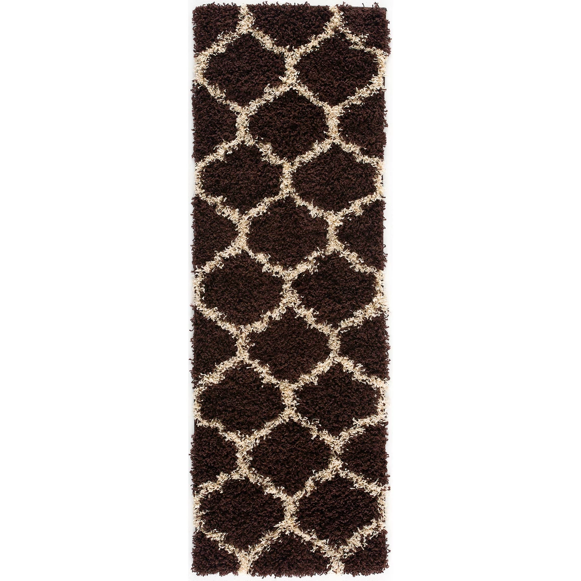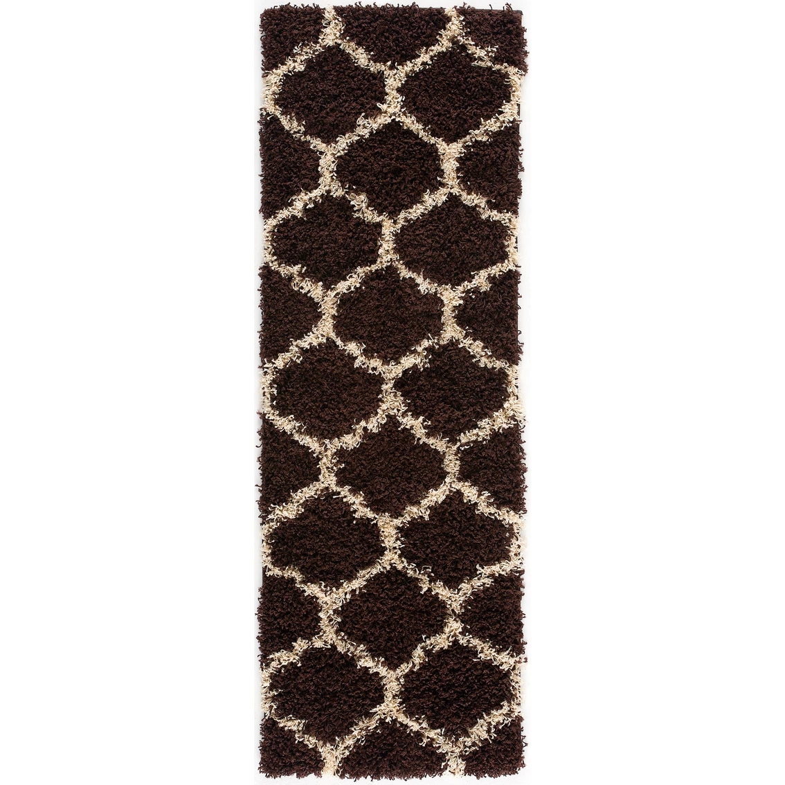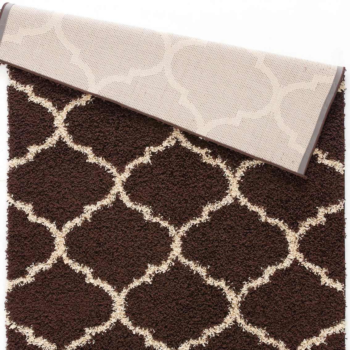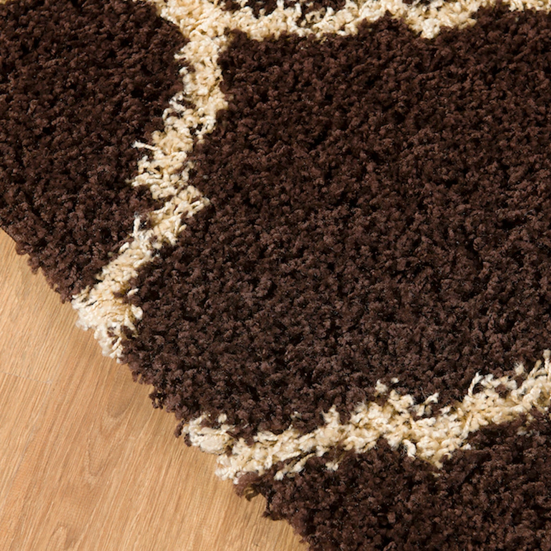This is not your ordinary retro shag rug. The Anabelle Brown Shag Rug boasts a trellis motif that is perfect for modern spaces yet its plush texture is suitable for cozy homes. It features a 2 in. pile height to encourage bare feet to sink their toes in and enjoy the comfort. Crafted from polypropylene, this fade and stain resistant design also stands up to the heavy traffic of busy areas in your home.