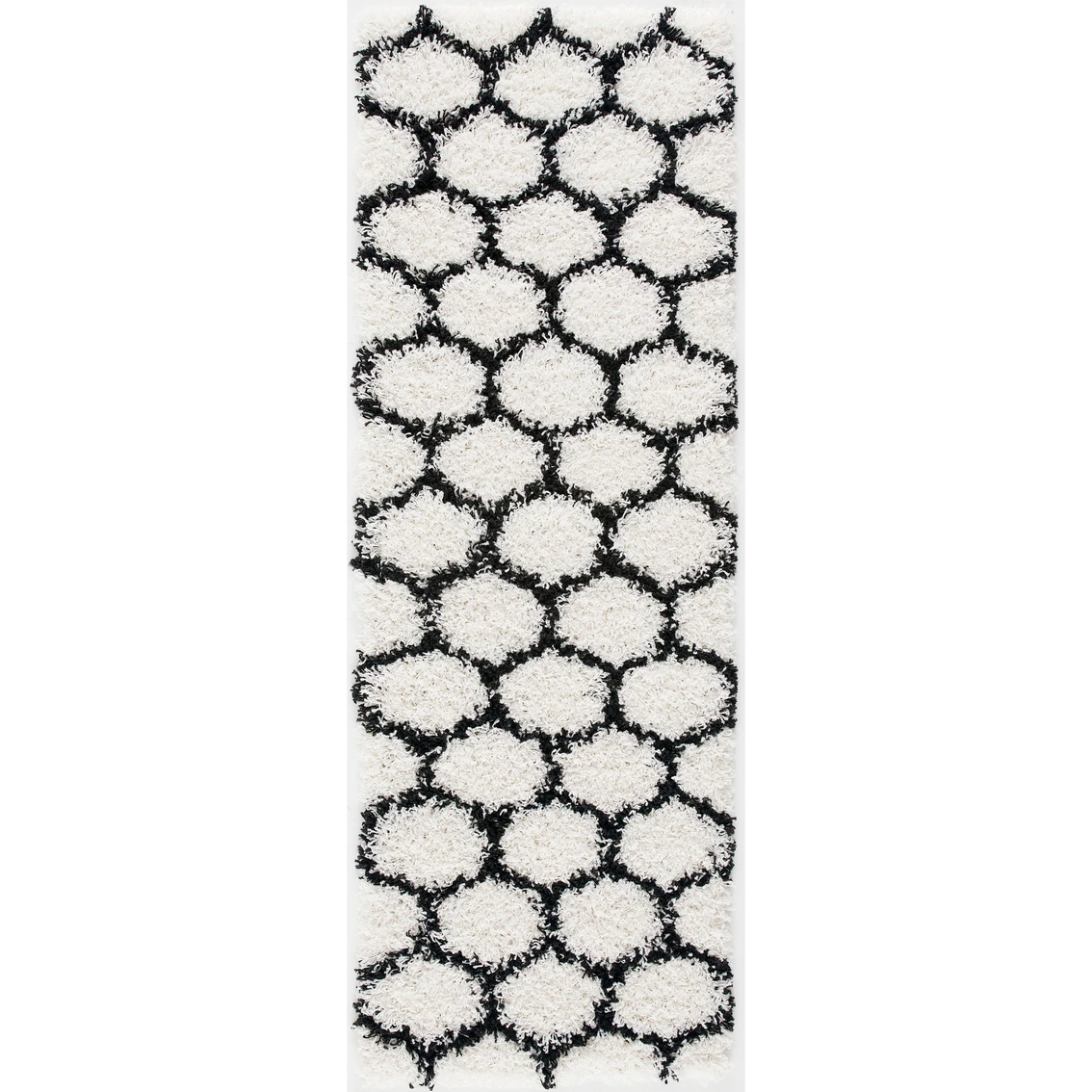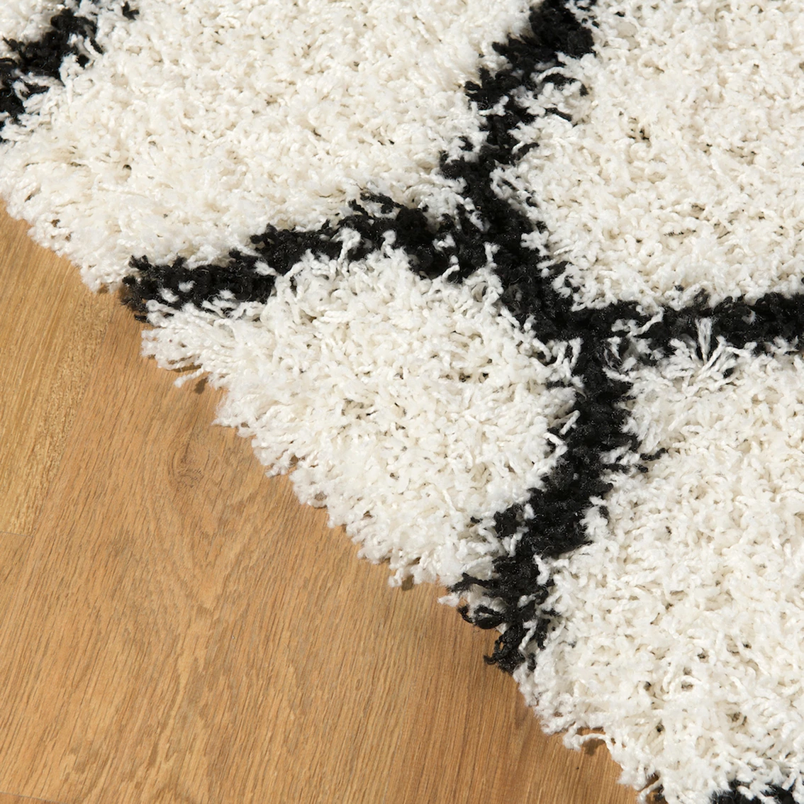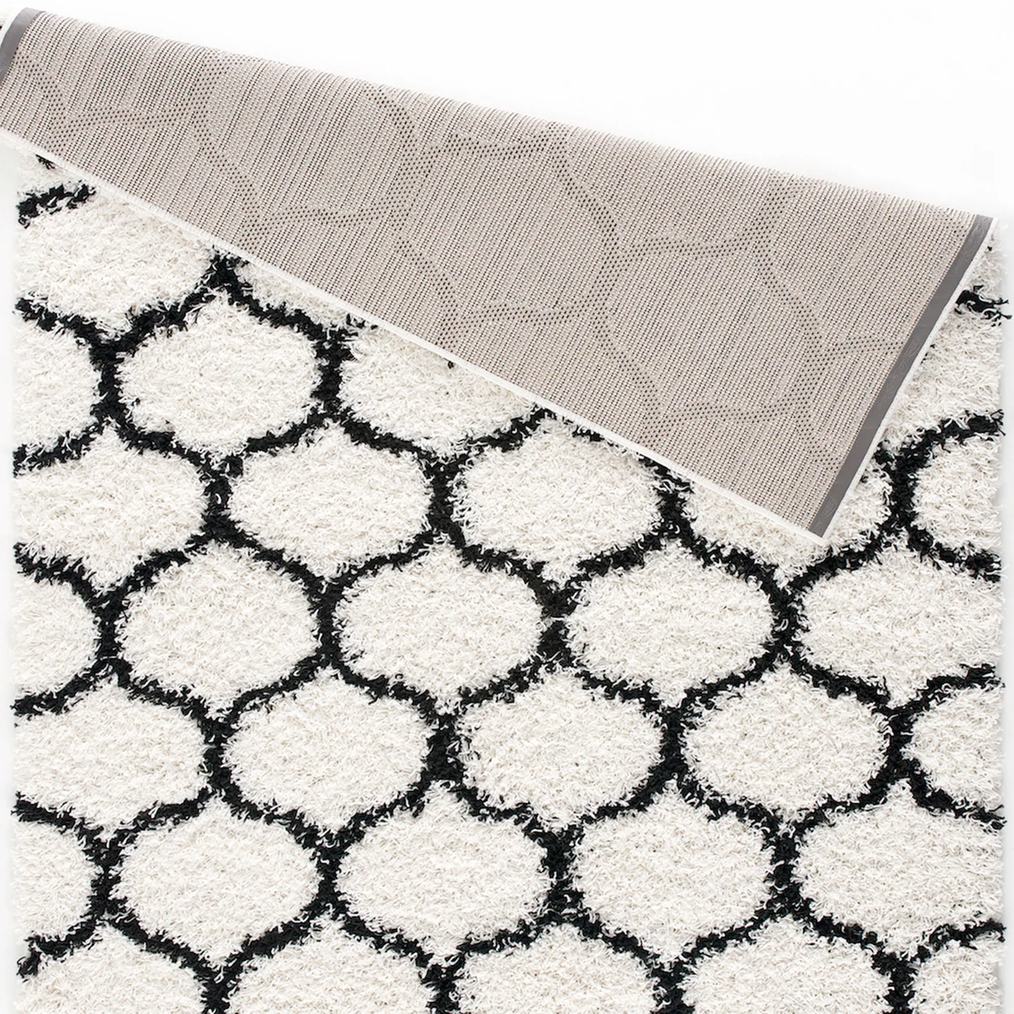 This is not your ordinary retro shag rug, the Desiree White Shag Rug boost a trellis motif that is perfect for modern spaces yet its plush texture is suitable for cozy homes. It features a 2 in. pile height to encourage bare feet to sink their toes in it and enjoy the comfort. Crafted from polypropylene, this fade and stain resistant design also stands up to the heavy traffic of busy areas in your home. When vacuuming, flip the rug upside down, turn on beater bar setting and vacuum the backside of the rug to loosen dirt. Repeat as many times as needed. If size permits, shake rug outside when necessary to rid rug of dust and debris. Blot any spills with a clean cloth immediately, do not rub. For long-term care, professional cleaning is recommended. No matter where this rug ends up, L’Baiet recommends pairing it with a rug pad to keep it in place. So, go ahead elevate your room with this luxurious rug from The Barrow Collection by L’Baiet, it is sure to draw attention. Model: BW336W57.