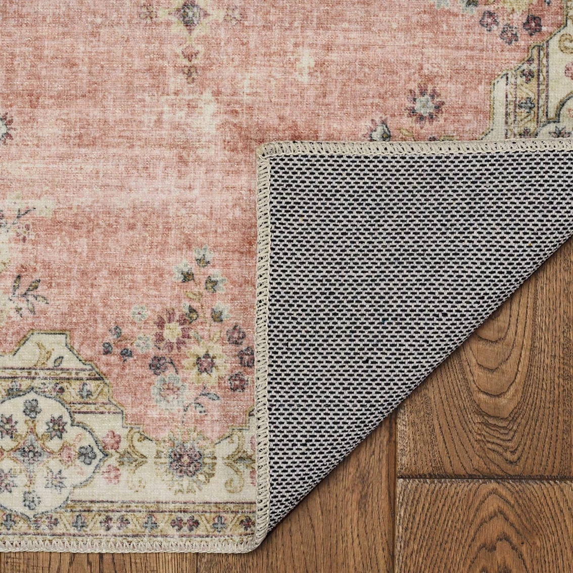 Spills, dirt, pet dander and accidents are not a problem when you can throw it in any standard-sized washing machine. Perfect for high traffic areas, this Linon rug is both lightweight and durable. Made of stain resistant, 100% polyester with a nonslip backing, it is designed to be family and pet friendly, making maintenance a breeze. Save money and time without sacrificing style. You will want a rug like this in every room! Model: RUGWR1328.