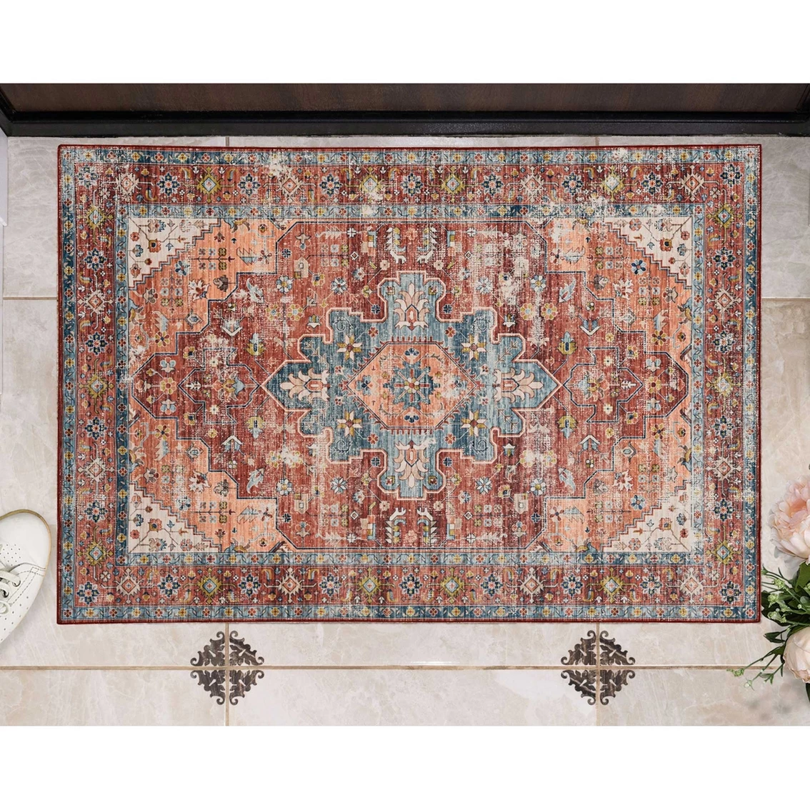 Spills, dirt, pet dander, and accidents are not a problem when you can throw it in any standard size washing machine. Perfect for high traffic areas this rug is both lightweight and durable. Made of stain resistant, 100% polyester with a nonslip backing, it is designed to be family and pet friendly, making maintenance a breeze. Save money and time without sacrificing style. You will want a rug like this in every room! Model: RUGWR1457.