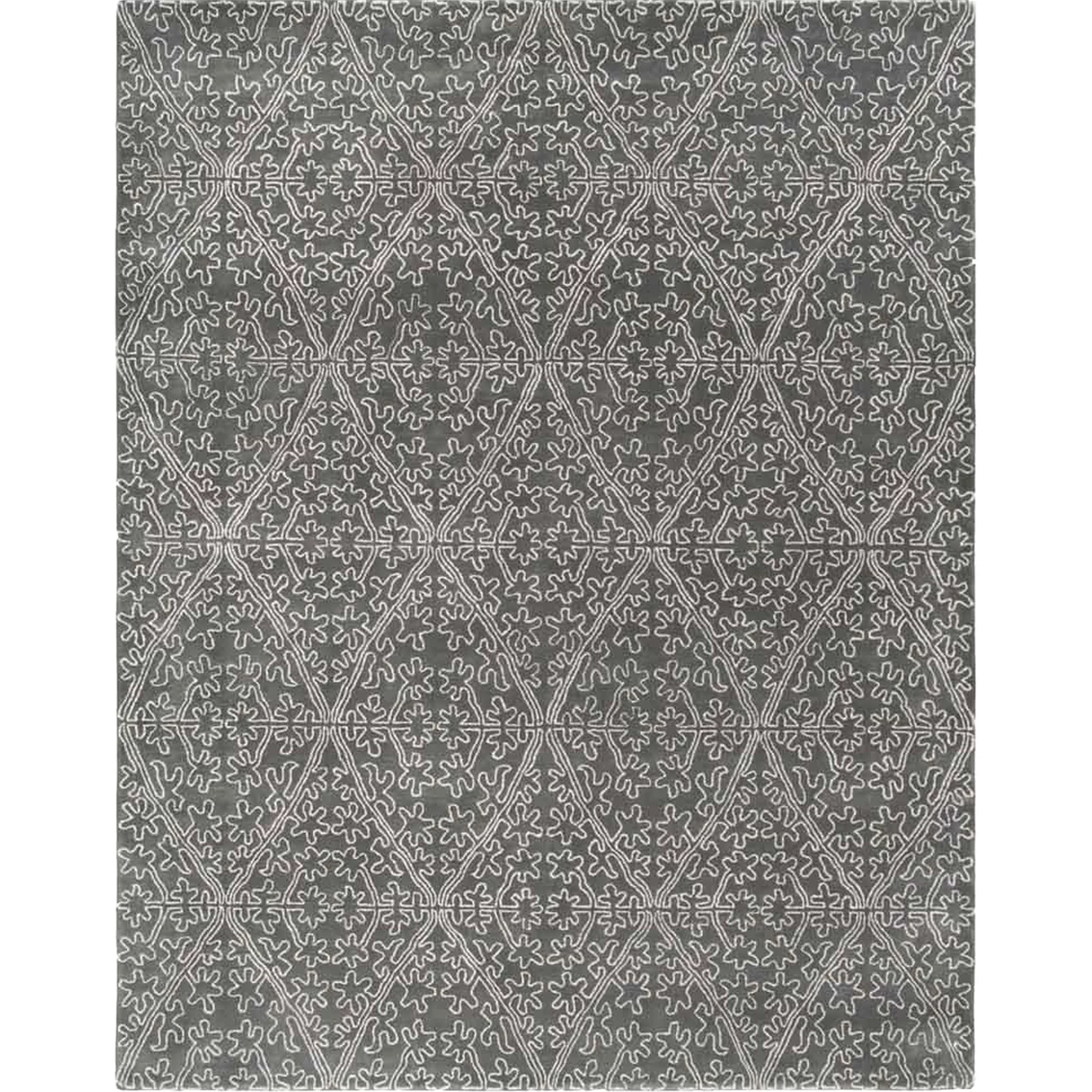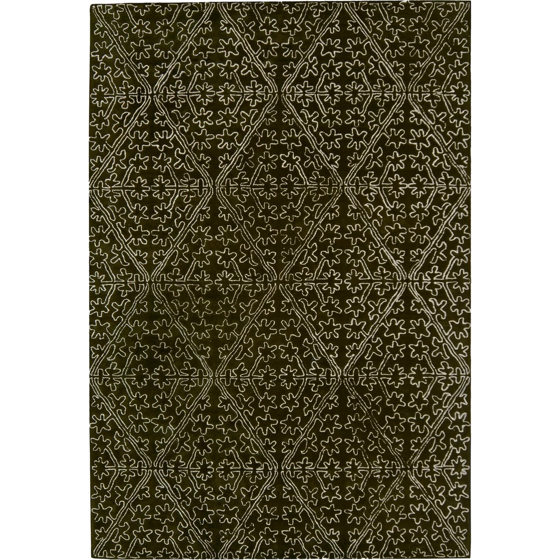 Derived from a 17th-century Italian fabric document, the surprisingly modern pattern rug in Strolling Garden from Martha Stewart Collection replicates outlined laid work called couching. In the original archival textile, this technique involves cording applied to satin cloth; in this modern version, viscose yarns are used to outline the same lustrous pattern against Strolling Garden’s cut-pile back of New Zealand wool. Model: MSR3258C.