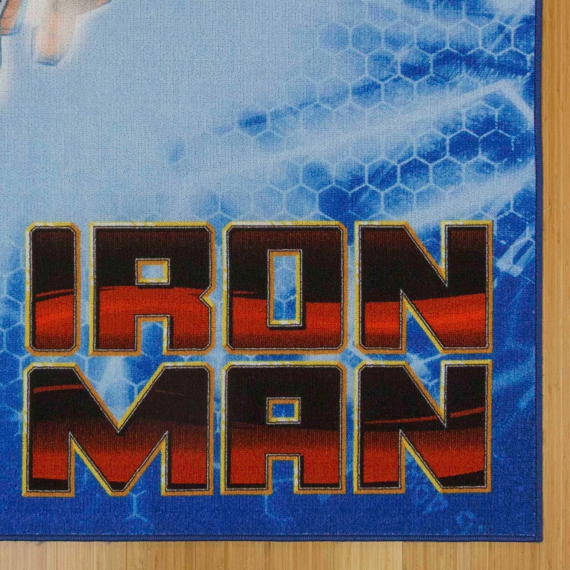 Marvel Iron Man Area Rug 54 x 78. When billionaire industrialist Tony Stark dons his sophisticated steel-mesh armor, he becomes a living high-tech weapon — the world’s greatest fighting machine. He is the Armored Avenger — driven by a heart that is part machine, but all hero! He is the Invincible Iron Man! Digitally printed for exceptional color and detail, this jumbo rug measures 4 ft. 6 in. x 6 ft. 6 in. and is perfect in any room of the house. Model: 47329.