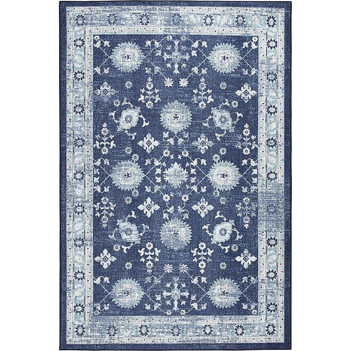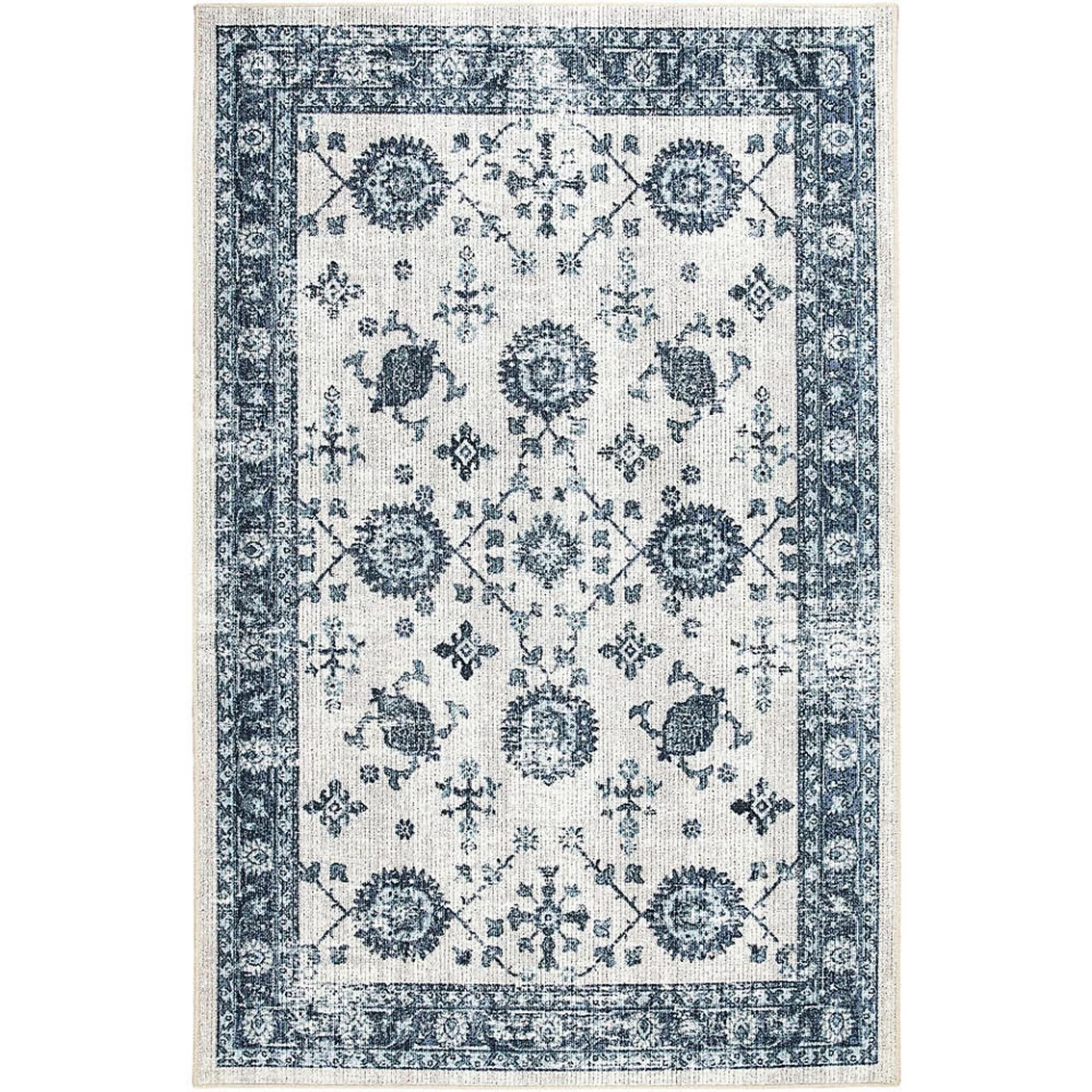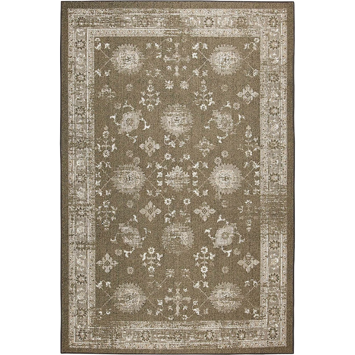 The Miley Rug from Mohawk Home has a traditional ornamental pattern rug with soft tones. The tribal artistry of this collection is durably designed with a blend of premium nylon and polypropelene yarn. Dependable in high traffic areas and stain resistant. Model: 086093637934.