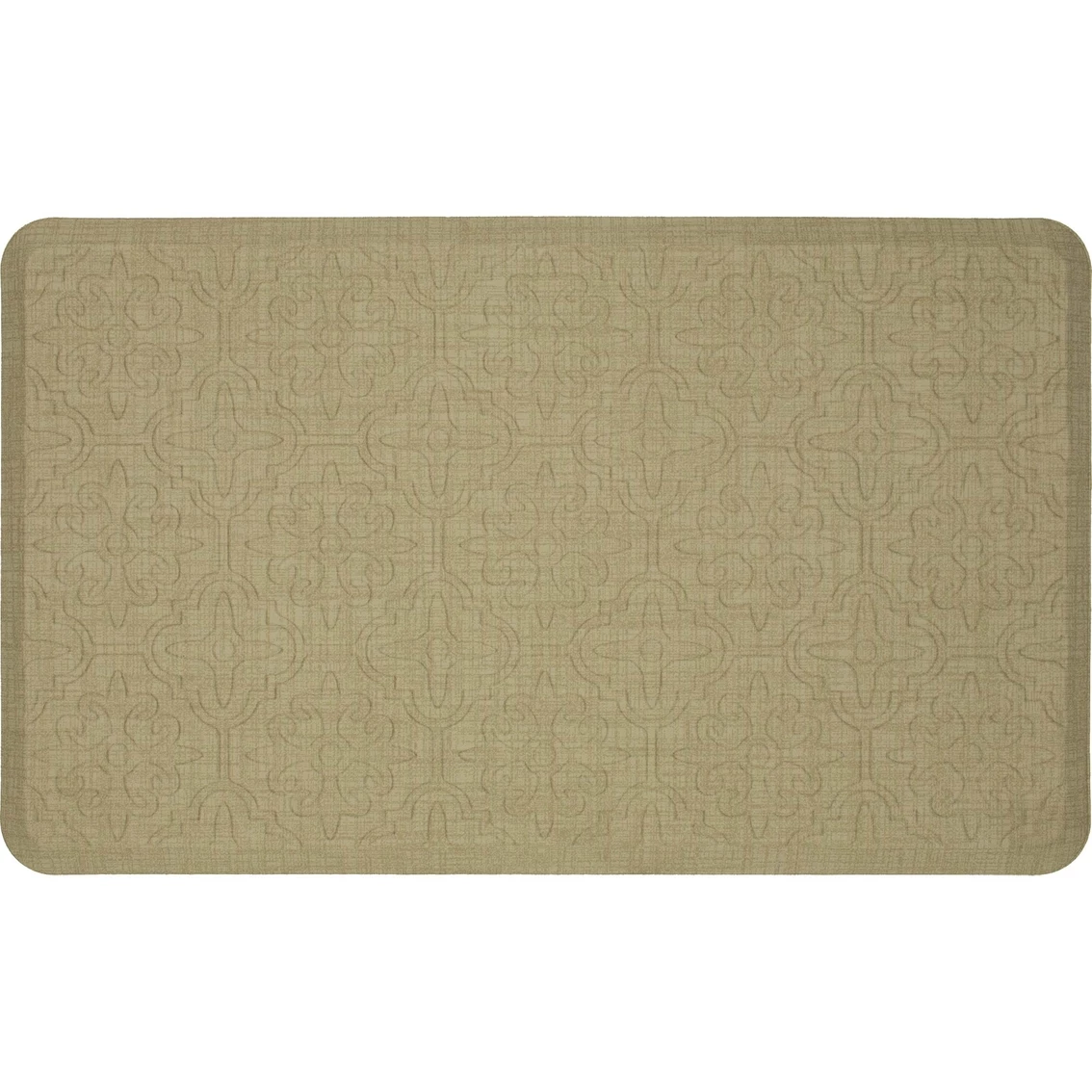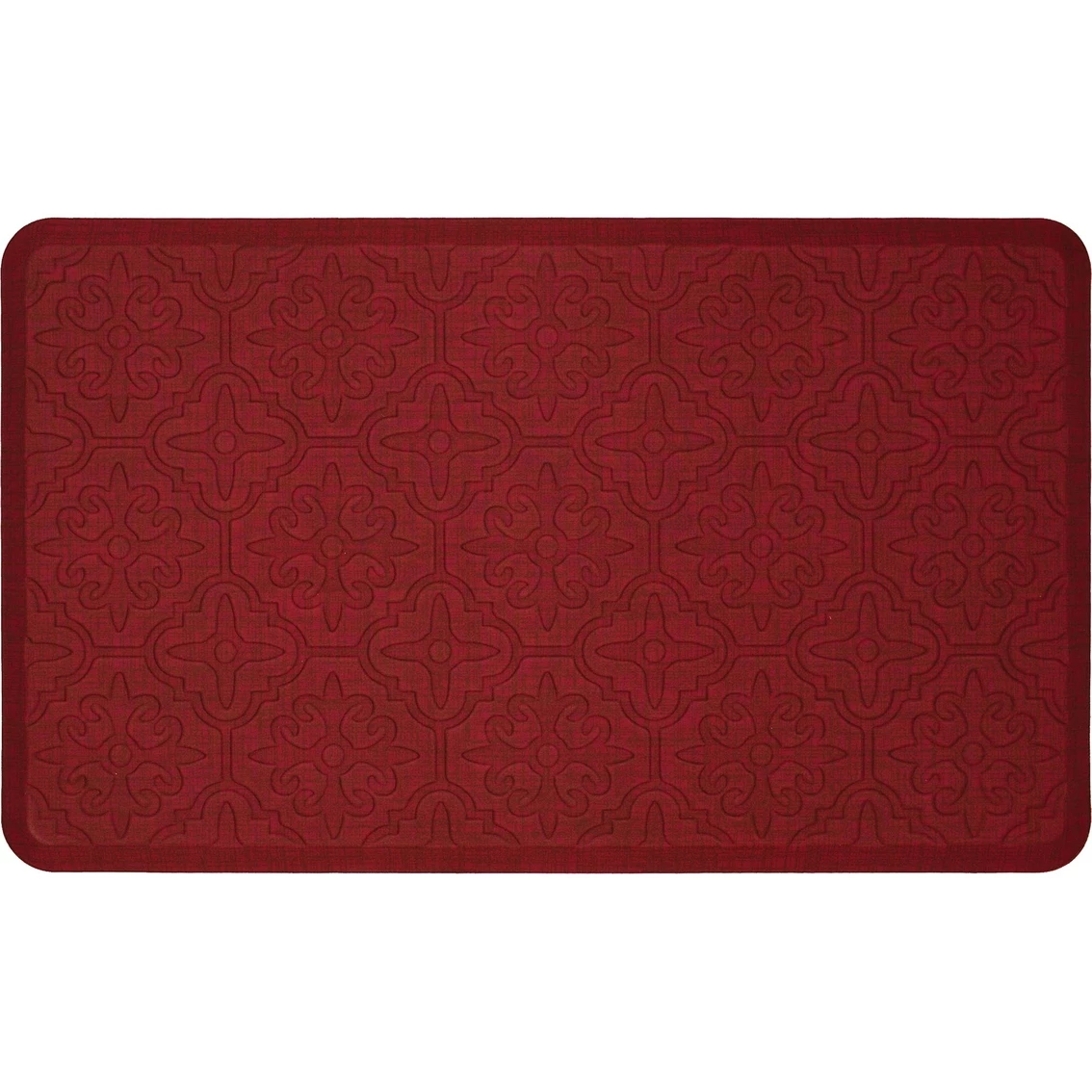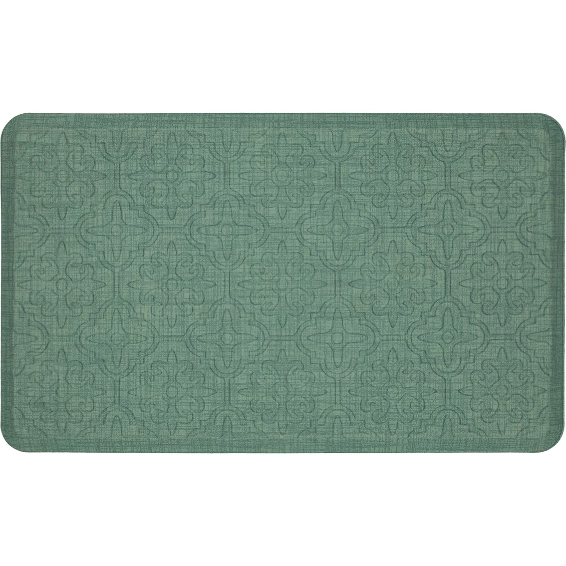Quilted with the traditional design evocative of Talavera, this Mohawk Home kitchen mat is with a resilient Dri-Pro cushion core with its anti-fatigue technology that gives soothing comfort to your back, legs and feet. Easily cleaned with damp cloth and mild detergent, it requires very little maintenance. Model: 4954.