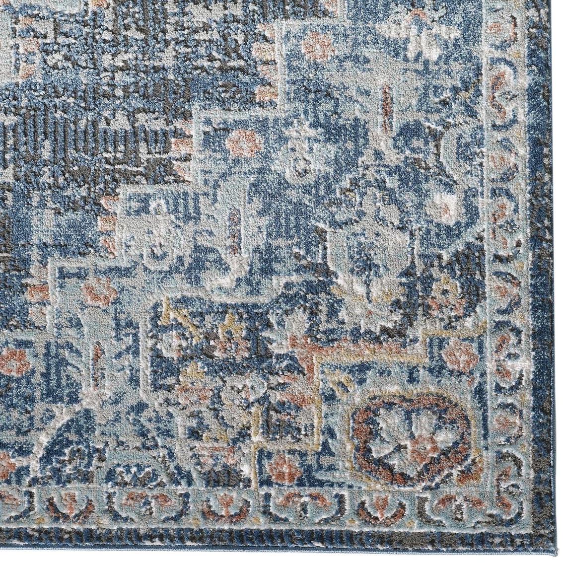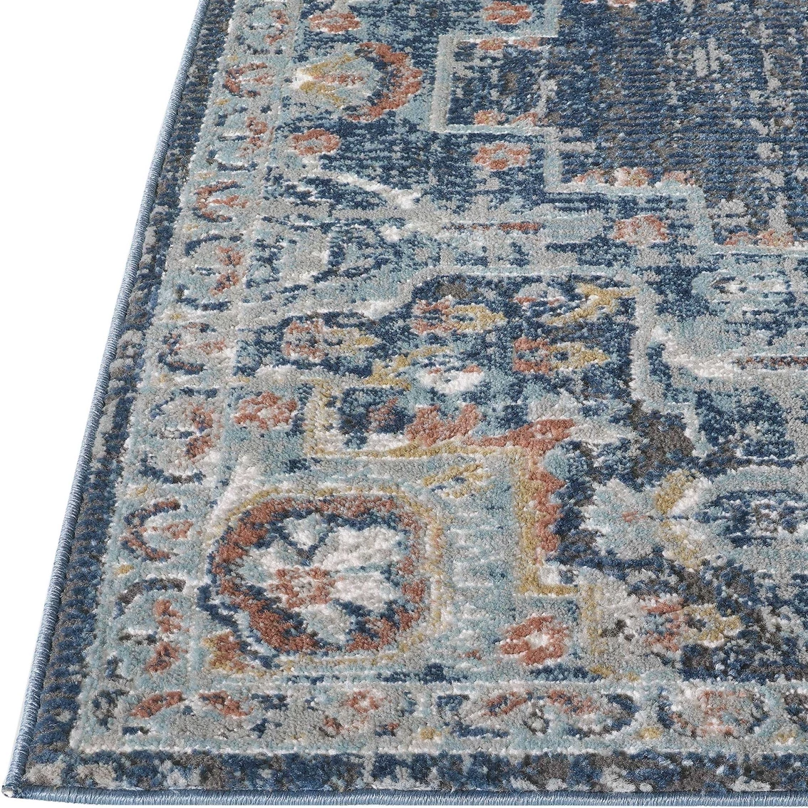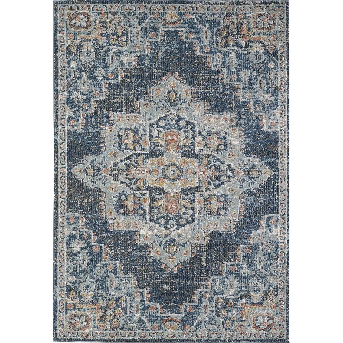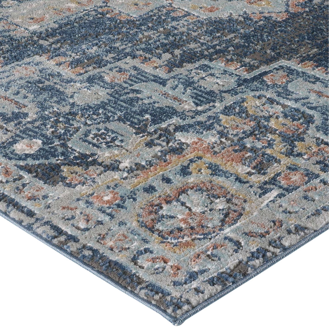 With stylish distressing and rich colors, this traditional, Oriental style area rug fits surprisingly well with a wide range of modern contemporary decors. The Natco Home Ornate Collection Dorcie Area Rug has intricate designs and vivid tones of royal blue, rust, ivory, and gold that are sure to brighten up any room with elegance and style. The delicate design and expert construction provide enhanced texture and color disbursement throughout, adding elegance to your office space, bedroom, or dining area. Each rug is machine made using state-of-the-art, computer-driven looms, and the low profile pile of super-soft polypropylene and polyester yarn allows you to enjoy high-end design without sacrificing comfort or durability. Perfect for a wide range of decor styles, this beautifully woven area rug will do well in any area of your home — even places with high foot traffic and spill risk. In addition to being easy to clean, the stain resistant and fade resistant properties of this piece ensure that it will maintain its appearance for years to come. For indoor use. Imported. Model: 3824.218.55EC.