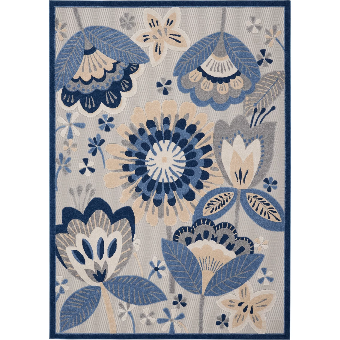 Uplift your surroundings in style with the fun, oversized florals of this indoor/outdoor rug from the Nourison Aloha Collection. The color palette framed by a border is designed to bring bold definition to your porch, patio, or indoor decor. Expertly machine made of premium, stain resistant fibers, this Aloha area rug offers durability and ease of cleaning — just rinse with a hose and air dry! Model: 42620910.