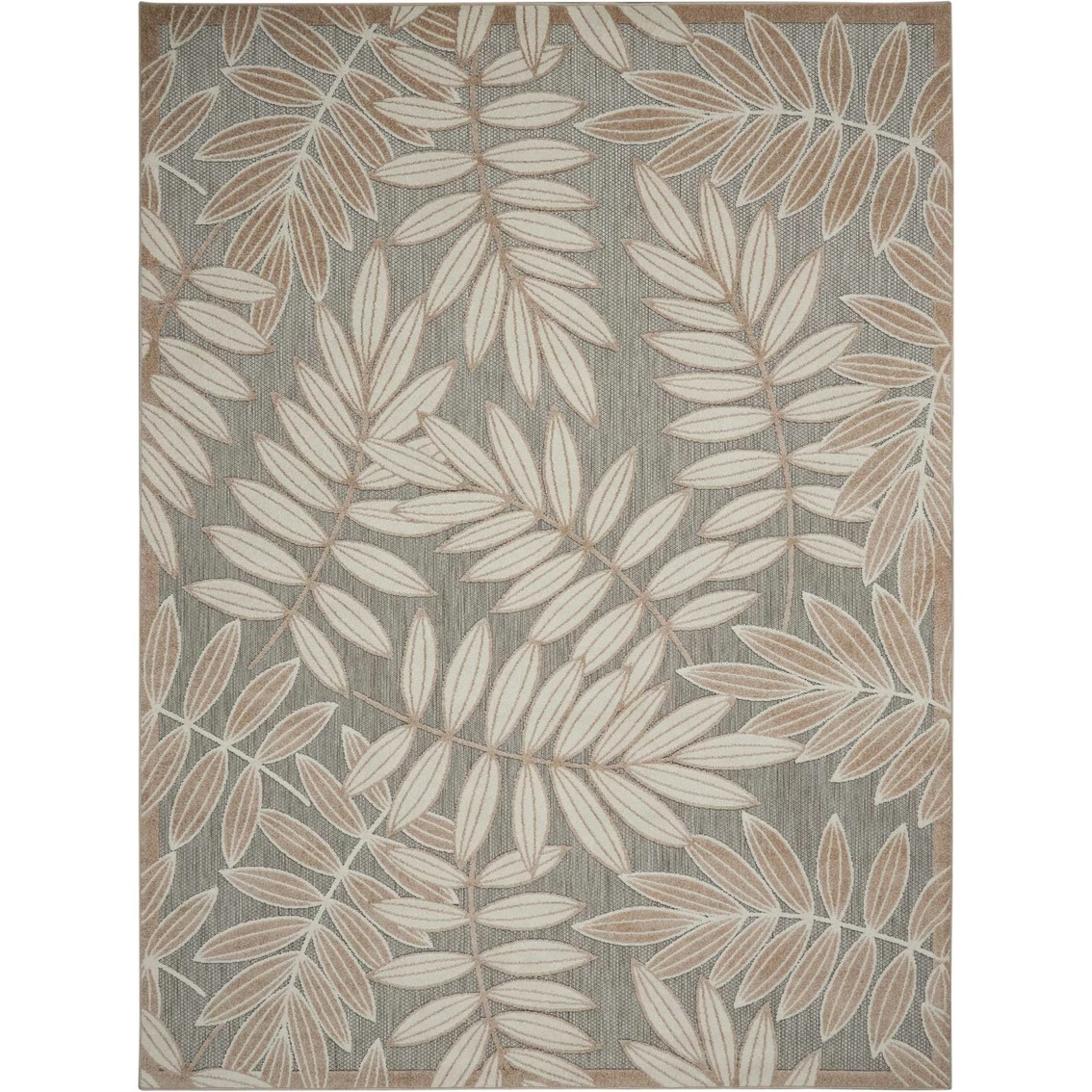 A cheerful and charming oversized leaf design is a fun, flirty and fashionable way to uplift any environment, especially when presented in complementary hues of grey, beige, and ivory. This Aloha indoor/outdoor area rug from Nourison is created from premium stain-resistant fibers for long wear, low maintenance, and a splendid texture. Style: 42620910.