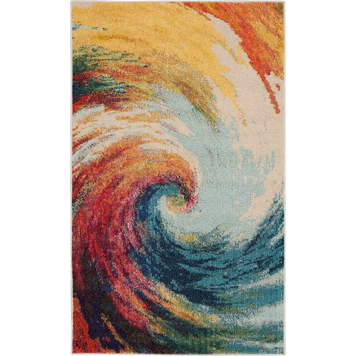 Spiraling waves of radiant color dazzle the eye in this exciting Celestial Collection area rug by Nourison. The spiral design hints at galaxies forming, and brings the beauty of the cosmos into the room in an artful impression of infinite mystery. Model: 42620910.