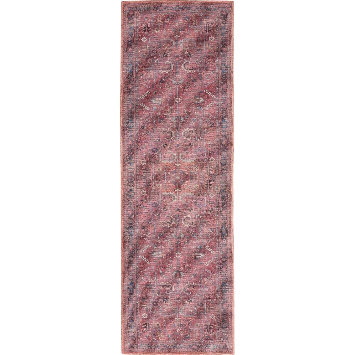 Traditional meets contemporary with this rug from the Nicole Curtis Series 1 Washable Rug Collection by Nourison. With a classic Persian pattern in brick red, navy and ivory tones, this rug is finished with a subtly distressed effect that lends a rustic vibe to your bedroom, home office or living room. The rug is flat woven from a delightfully soft blend of lightweight cotton and chenille that’s easy to clean – simply machine wash. Model: SR102.