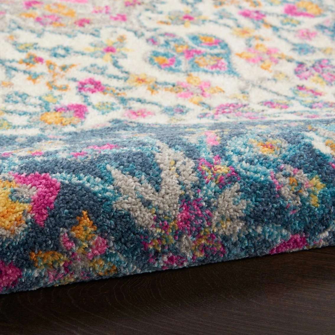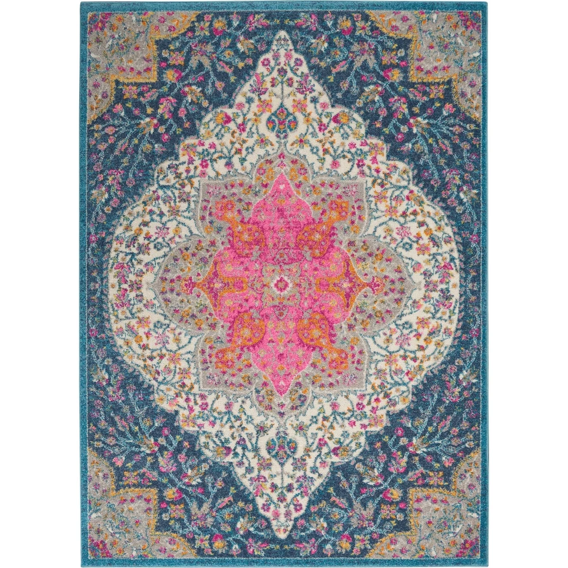 This stunning Passion area rug takes inspiration from vintage Nourison Persian paisley design with a dramatic center medallion, floral background and corner flourishes. Beautiful and bright in pink, indigo, fuchsia and gold with the added pleasure of soft and textural cut-pile. Power-loomed of modern, easy-care fibers. Style: 42620910.