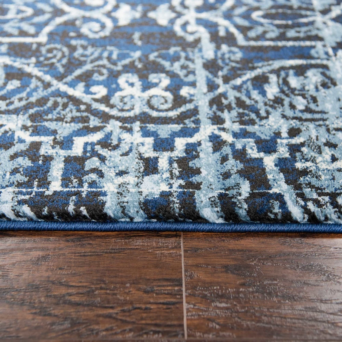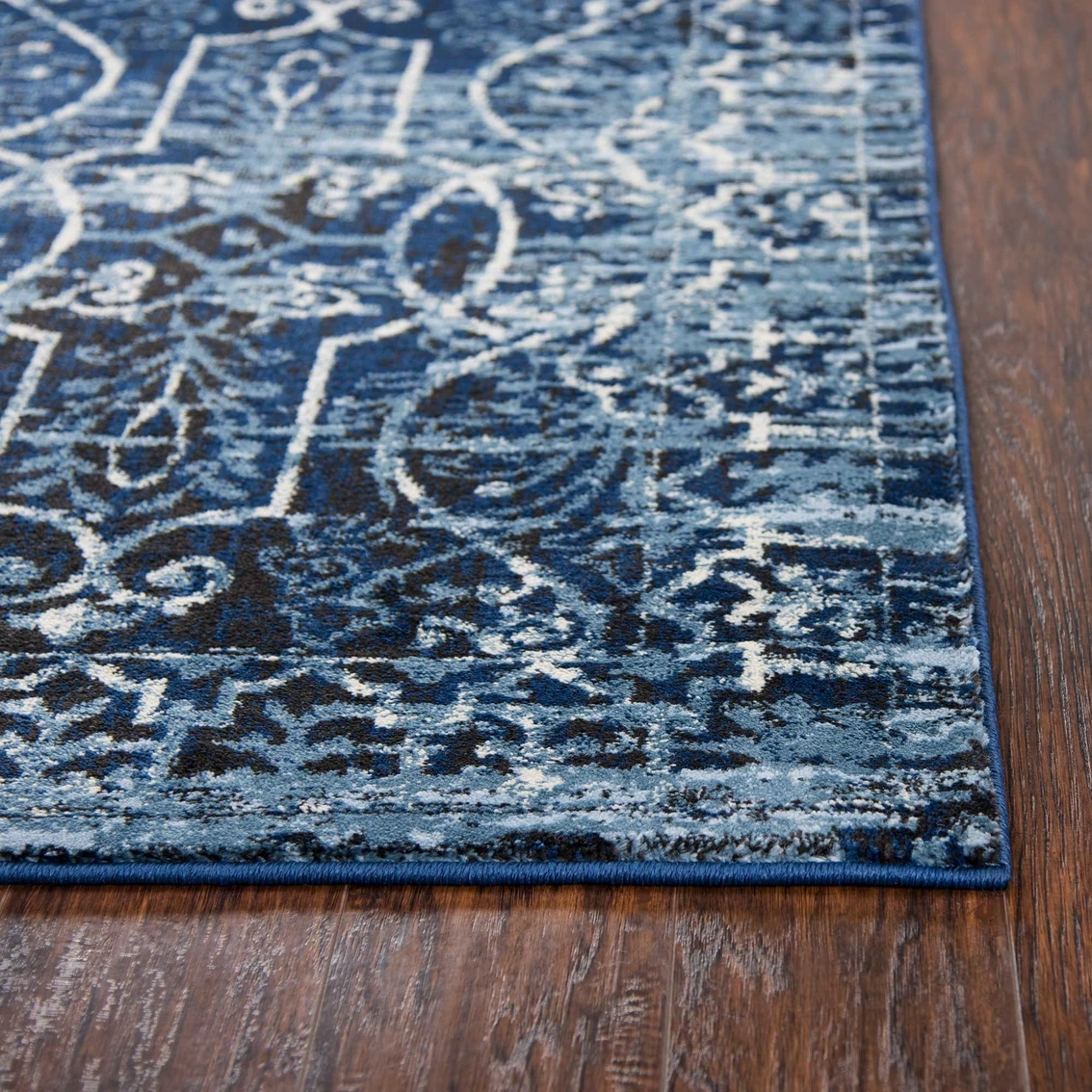 Using antique Persian carpets as an inspiration, the artist has updated this design through the clever use of scale and faux wear patterns. By using a wide variety of shades in today’s hottest colors, the blue, gray and cream accents make this rug from Rizzy Home on point for today’s hot trends. Power loomed in India using an exclusive new yarn called “Zirlon” which has the rich look and soft feel of wool with the cleanability and affordability of traditional synthetic fibers. Model: PNCPN696409372377.