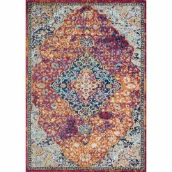 Just like art induces sentiment, this stunning rug evokes fiery emotion: love, passion, fierceness. The bold bursts of deep red creatively complemented by hints of bright orange serve as an eye-catching tonal element, while icy tones of blue and white add a touch of coolness, offering a beautifully balanced fire meets ice situation. In striking Rosy Peach area rug, elements of the timeless heirloom are reimagined with daring, contemporary features, reaching across an eclectic variety of styles. Leading the pack in both visual aesthetics and functionality, the thick, stain-resistant material and ultra-plush texture offers unparalleled levels of durability and comfort.