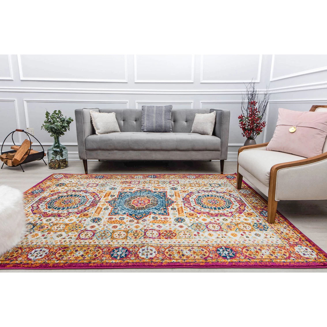 Recalling a gorgeous gradient sunset boasting fiery hues of deep scarlet all the way through shades of creamy yellow, the Winter Melon area rug is bursting with creative design and a half-retro, half-contemporary essence. A vibrant color palette paired with timeless, yet chic medallions and motifs creates a statement floor piece to be remembered. For a beautiful bohemian vibe pair with natural woods, for a vintage-inspired look pair with funky upholstered pieces, or for a more opulent space, deep leathers and reflective accents are perfect.