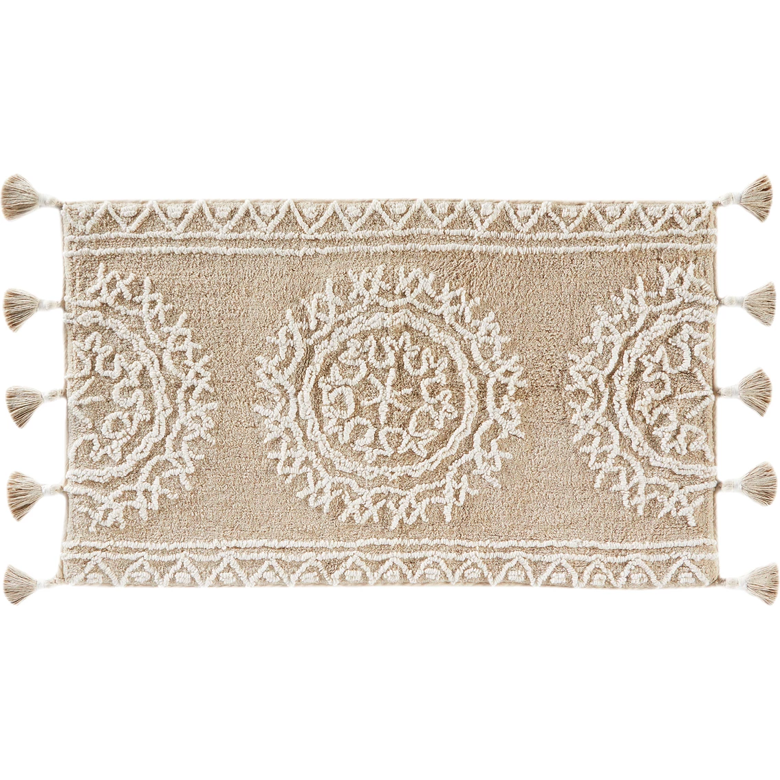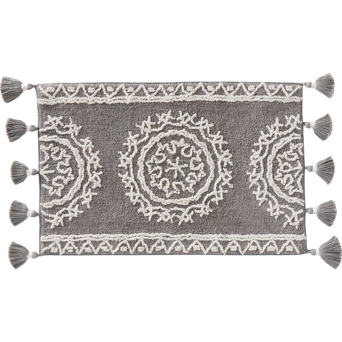 Soft to the touch and visually appealing, you will love the Medallia Rug from Saturday Knight. The plush cotton pile features a 2-tone medallion design and fun, tasseled trim. This design is crafted to fit your unique space perfectly. Dimensions do not include 3.5 in. long tassels.