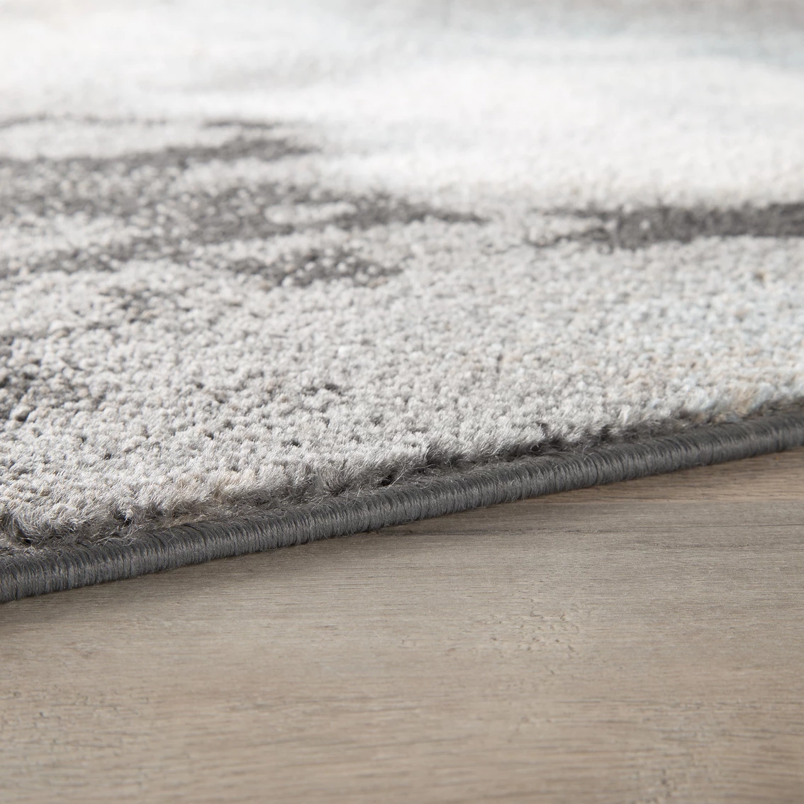 Add interest to any room with the Joash Accent Rug from Signature Design by Ashley. Machine woven rug measures 10 x 8 ft. with a watercolor abstract design in shades of gray. Polypropylene rug has an 8mm pile and is backed with jute. Spot clean only. Rug pad recommended. Model: R403121.