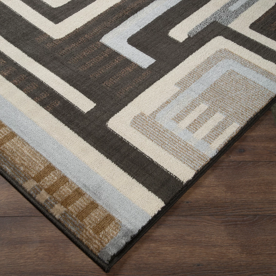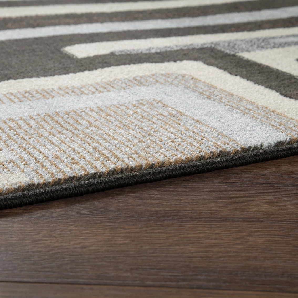 Brighten up any room with the Juhani Accent Rug from Signature Design by Ashley. Machine woven rug measures 7.25 x 5 ft. with a geometric design in muted tones of blue, cream and brown. Polypropylene rug has a 10mm pile and is spot clean only. Rug pad recommended. Model: R401962.