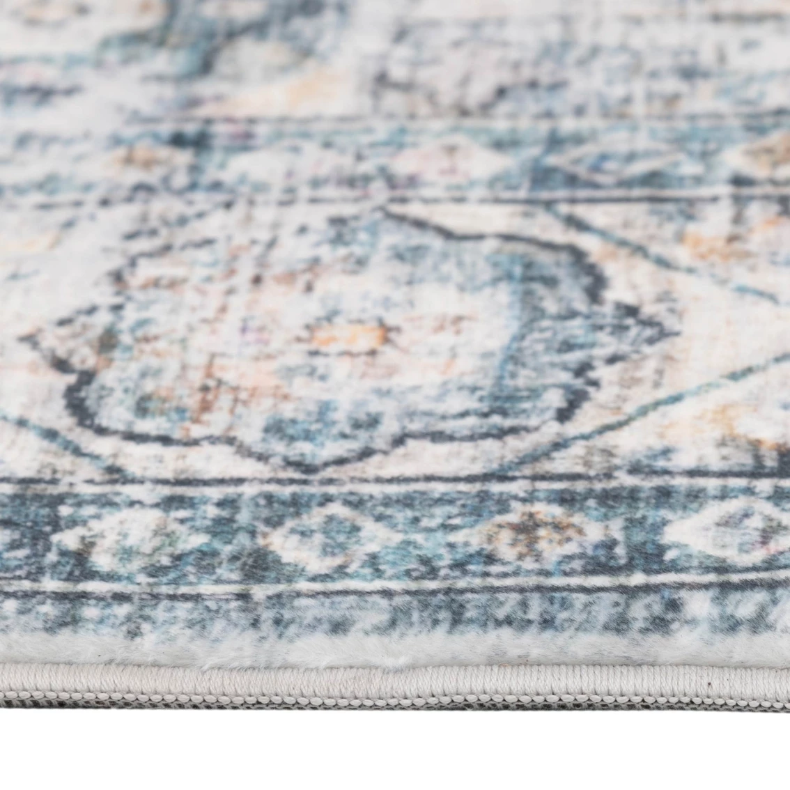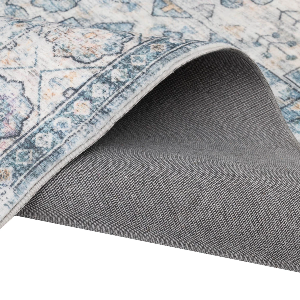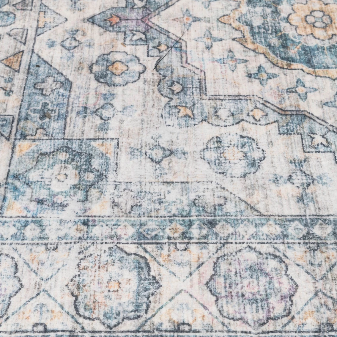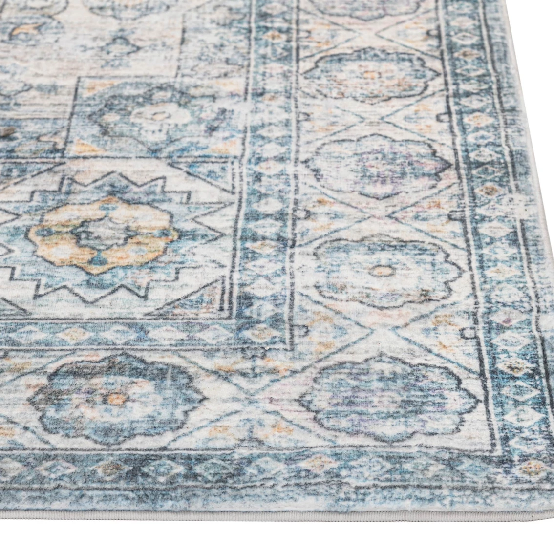 Crisp, ornate designs in bright sapphire and off white pair with pops of soft yellow and orange to create a welcoming foundation for any space. Brighten your living room, dining room, or home office with the cheerful colors and elegant design of the Trisha Yearwood Halen Collection Daken Area Rug, providing high-end style without the high-maintenance headache. Stylish distressing adds a chic, modern feel to this classic pattern, seamlessly complementing a wide range of home decor styles. This rug is truly a delight to the senses, with eye-catching design and touch-worthy texture that will never fail to garner compliments from admiring guests. Continuously enjoy the irresistible softness of 100% polyester faux fur underfoot without fear of staining or fading, even in busy homes with pets, children, or frequent visitors. A thick cotton canvas backing provides added stability and each rug is machine made with a digitally printed design to create exceptionally crisp details and rich colors throughout. A true delight to the senses, this rug is built to maintain its exceptional design and irresistible softness for years to come.