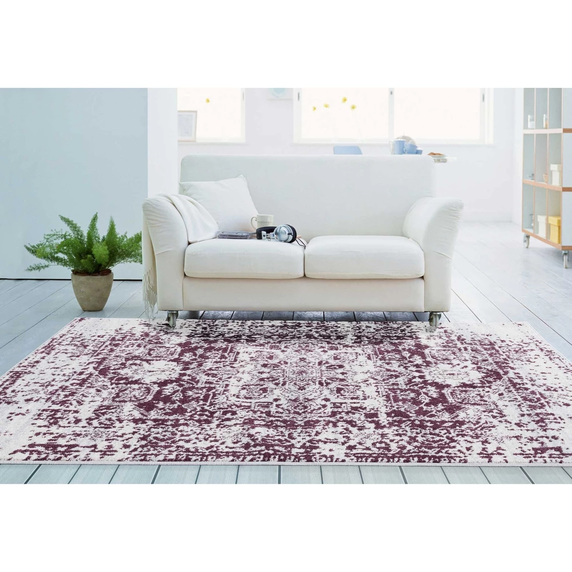 Create a stunning display of vintage style in your room decor with the United Weavers Abigail Lilith Area Rug. This chic floor covering features the in-style distressed look. Along with a designer look and feel, this exquisite rug is meant for durability with a cotton backing and is stain-resistant for your lifestyle needs.