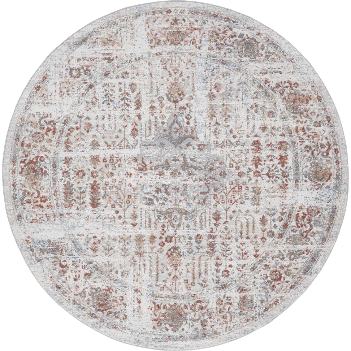 Ravishing and alluring, this trendy Austin Nixon Round Rug from United Weavers is perfect for a contemporary decorative style. An appealing, modern pattern with an ultra modish color pallet will enrich any room decor. This 7 ft. 10 in. rug is stunningly machine constructed in Turkey using durable heat set/polyester shrink yarn with jute backing for stain resistance and longevity