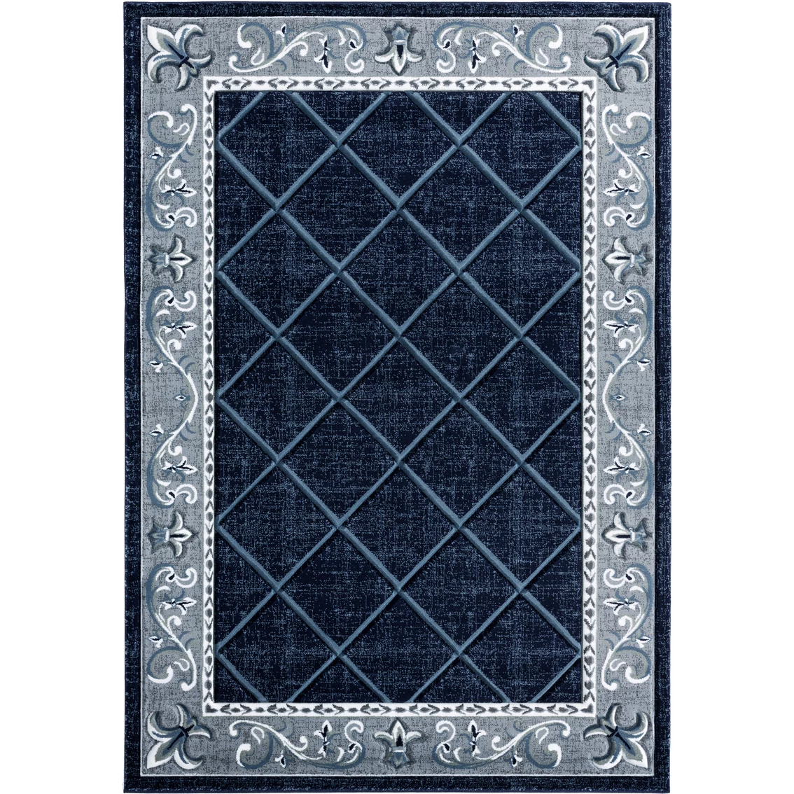 Add this classic United Weavers rug to your chic room decor for a timeless look. With a detailed ivory border with a simple trellis design on a smoke grey backdrop, this exquisite rug will complete your fashion-forward style. This machine-made rug has a hand carved design and is stain and fade resistant for your lifestyle needs. High-quality polypropylene/olefin for shine. Hand-carved in Turkey, giving durability and strength. Vacuum regularly without beater bar. Plush pile height for added softness. Great for high traffic areas. Available in multiple colors and sizes. Model: 2050-10972-69.