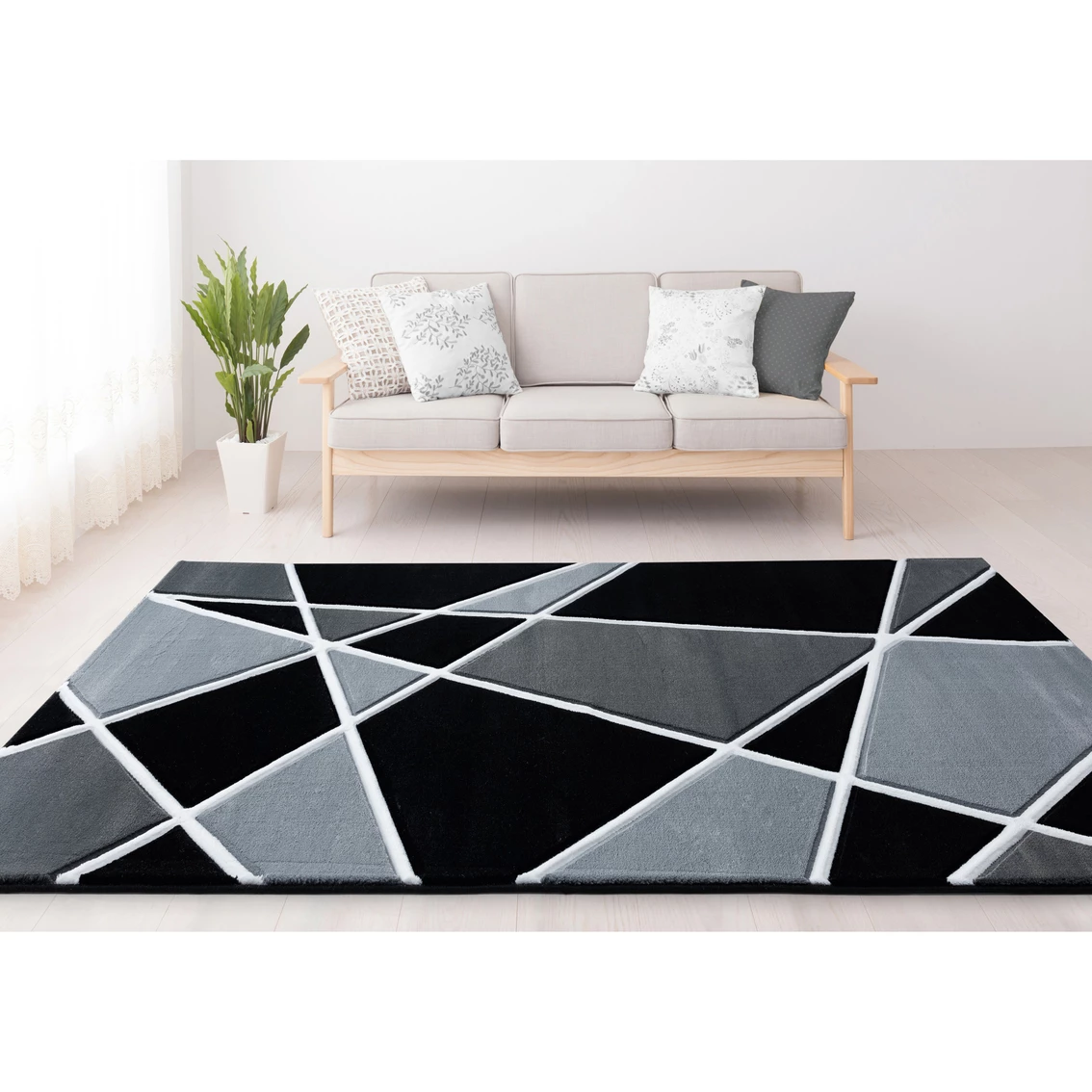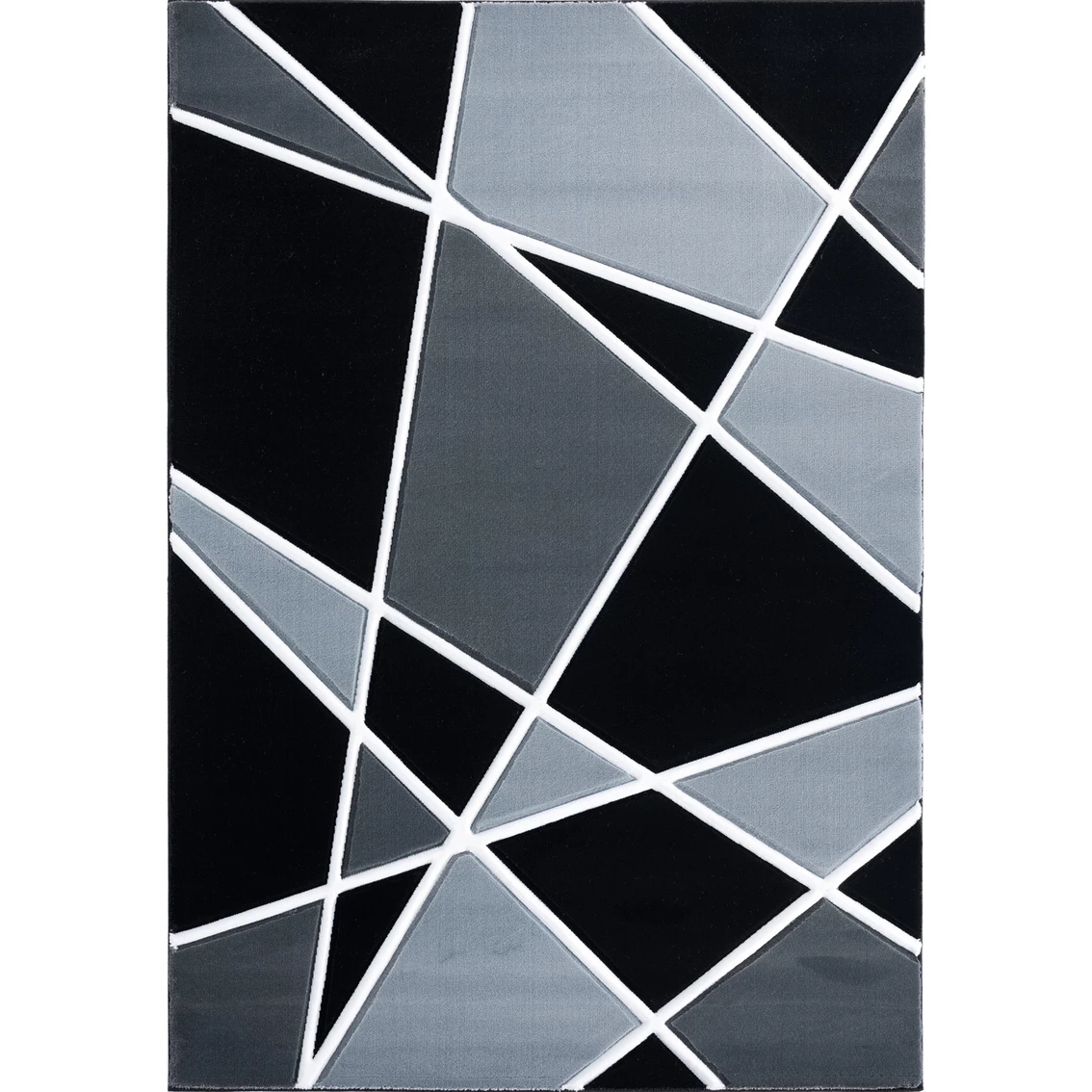 Create an ultra-modish look in your living space with this United Weavers abstract and contemporary rug. This stunning geometric design is enriched by modern colors of onyx black, smoke grey and pure white that will perfectly accent any room decor. This machine-made rug has a hand carved design and is stain and fade resistant for your lifestyle needs. High-quality polypropylene/olefin for shine. Hand-carved in Turkey, giving durability and strength. Vacuum regularly without beater bar. Plush pile height for added softness. Great for high traffic areas. Available in multiple colors and sizes. Model: 2050-10872-69.