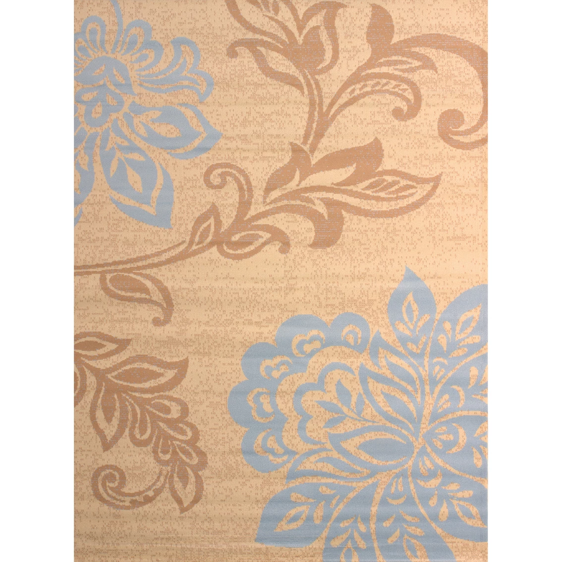 This contemporary design is inspired from enchanted botanical gardens. This marvelous rug from United Weavers will be the centerpiece of your room with its large flowers. This exquisite polypropylene machine-made rug has jute backing for long-lasting color and durability.