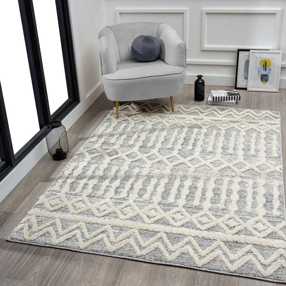 Trendy and appealing with a carved, high-low profile and stunning design, this gorgeous area rug from United Weavers will enrich your room decor. It was machine-made in Turkey using polypropylene tri-color frieze for an elegant look. Model: 2800-90472.