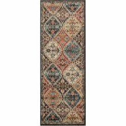 Subdued elegance come with this classic trellis design and bold colored rug. Classically timeless rug with beautiful warm colors of brick red, walnut brown, onyx and cerulean blue is your key to a royally elegant room. Machine made in Turkey with polypropylene yarn for stain resistance and lasting durability.